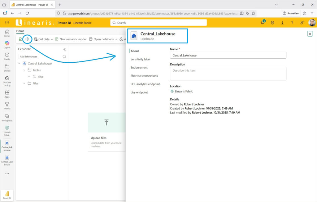 Die Settings des Lakehouse sind über das Zahnradsymbol einfach zu finden und sind derzeit auch noch recht überschaubar: