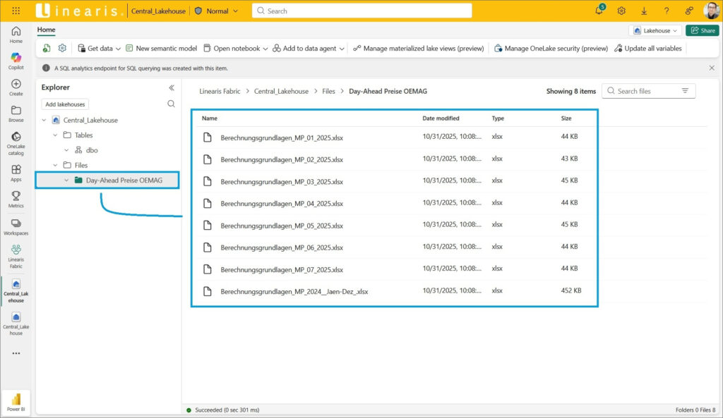 … und die Files liegen jetzt im Files Abschnitt unseres Lakehouse:
