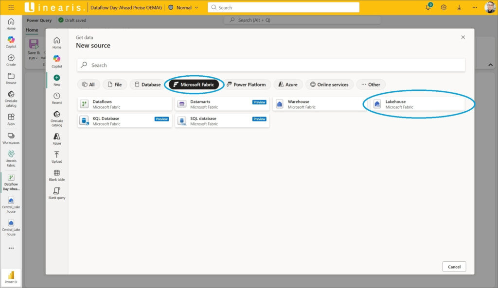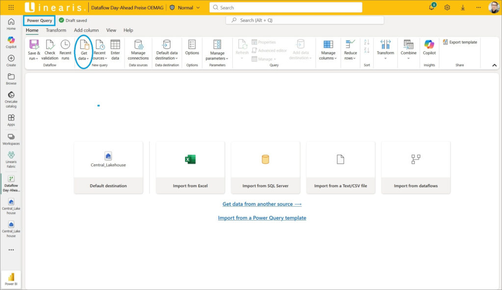 Nach dem Upload der Rohdaten werden wir den Dataflow Gen2 verwenden – das Power Query basierte Tool für Fachanwender. Übrigens: Dataflow Gen1 sind nicht Bestandteil von MS Fabric sondern „nur“ von Power BI, die Daten werden in einem Azure Datalake abgelegt und können nur von Power BI importiert werden (mehr dazu hier).