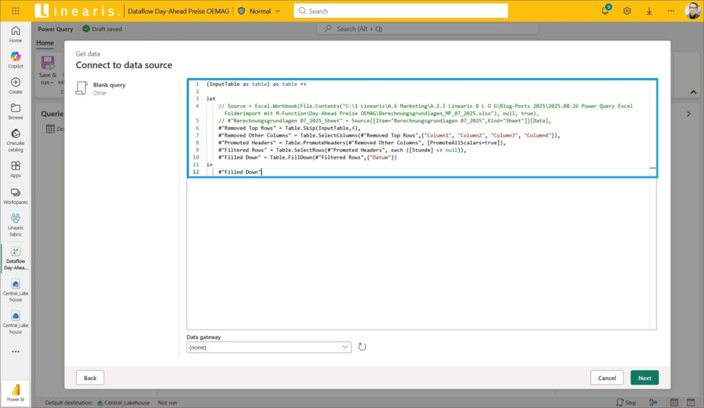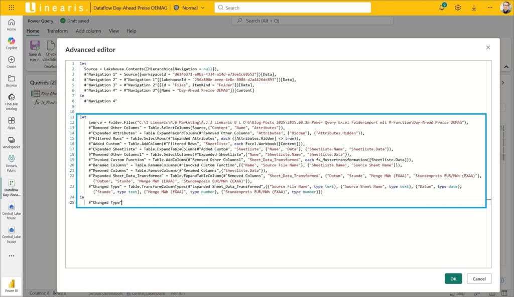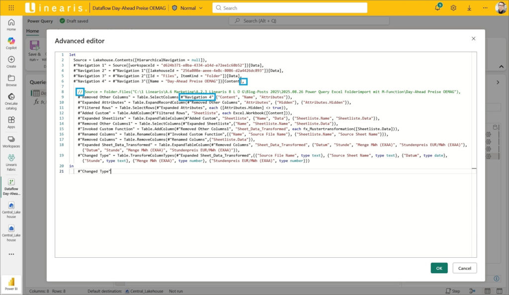3.3 Einkopieren der beiden M-Statements aus Power BI Desktop
