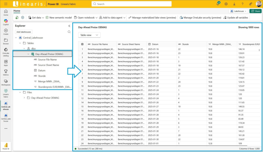 Den Power Query Editor des Dataflows können wir jetzt schließen und unsere erste fertige Output Tabelle im Lakehouse bestaunen :)